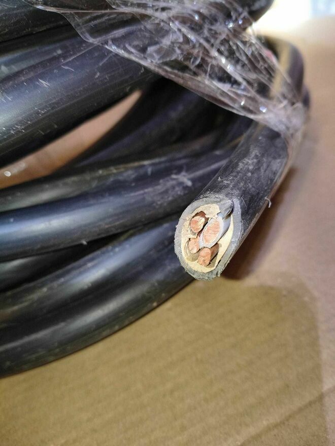 Pozostałość po budowie.Nowy przewód ziemny 4 x 10, idealny do zastosowań elektrycznych.